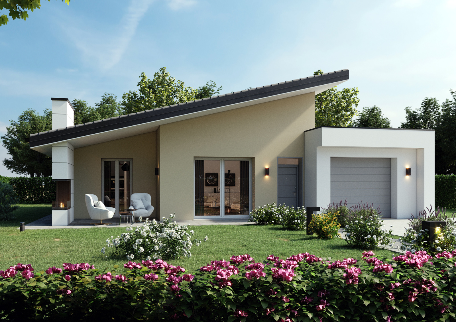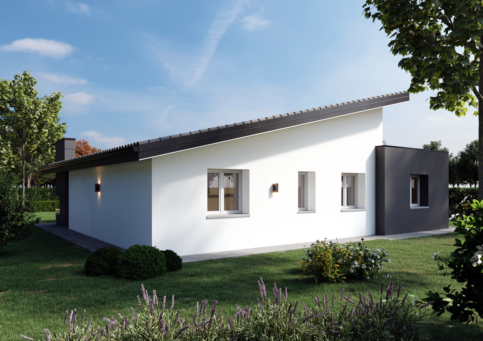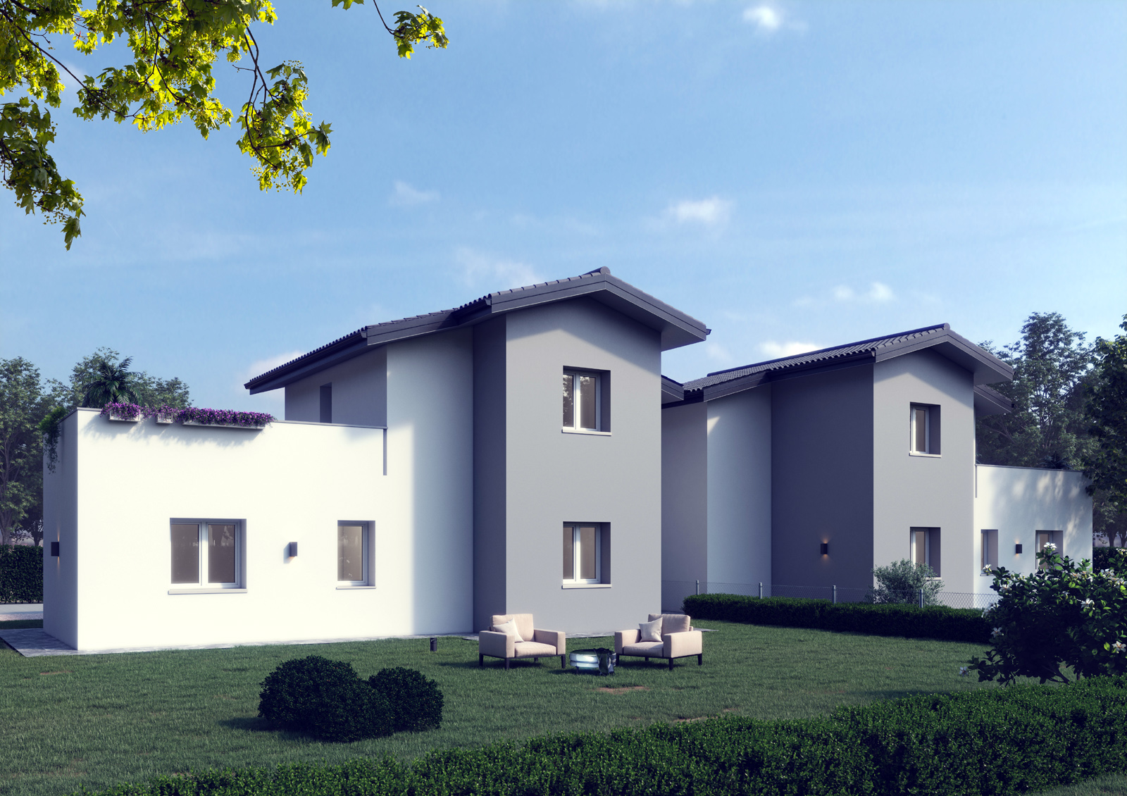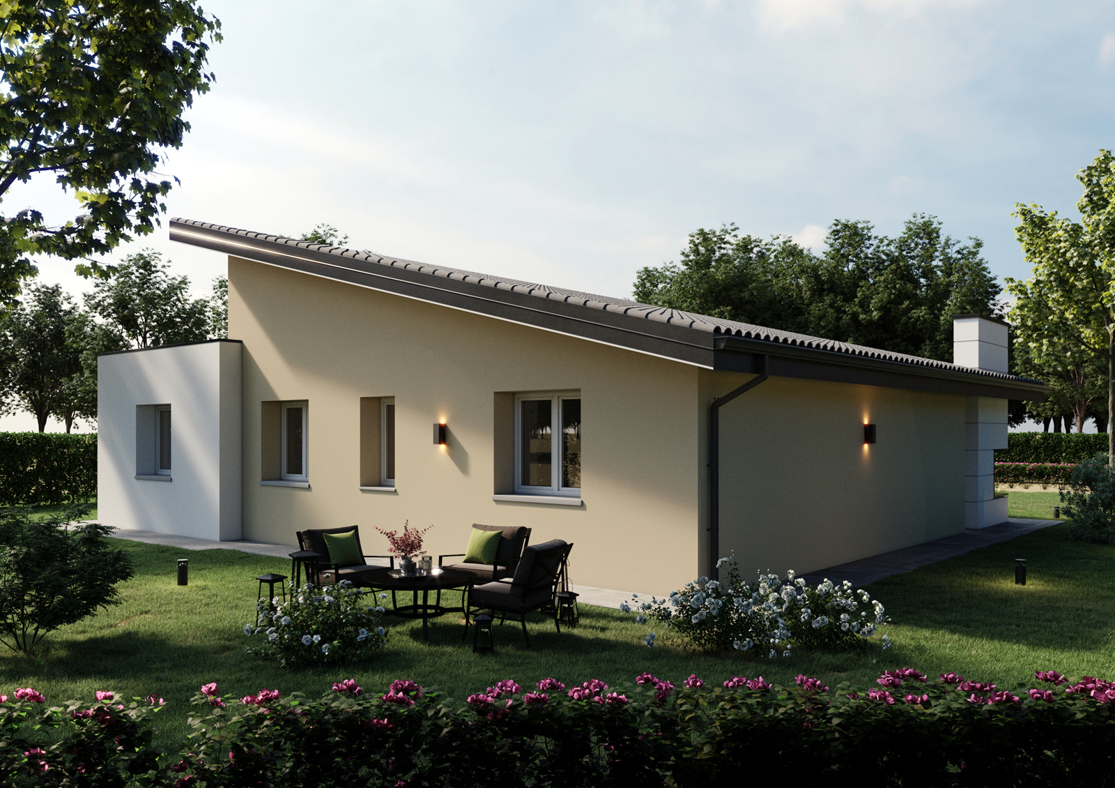 La filosofia progettuale prevede degli edifici moderni. Le unità residenziali monopiano presentano n.2 tipologie di copertura, copertura piana e monofalda.