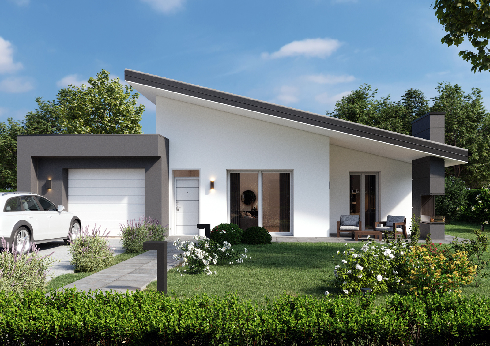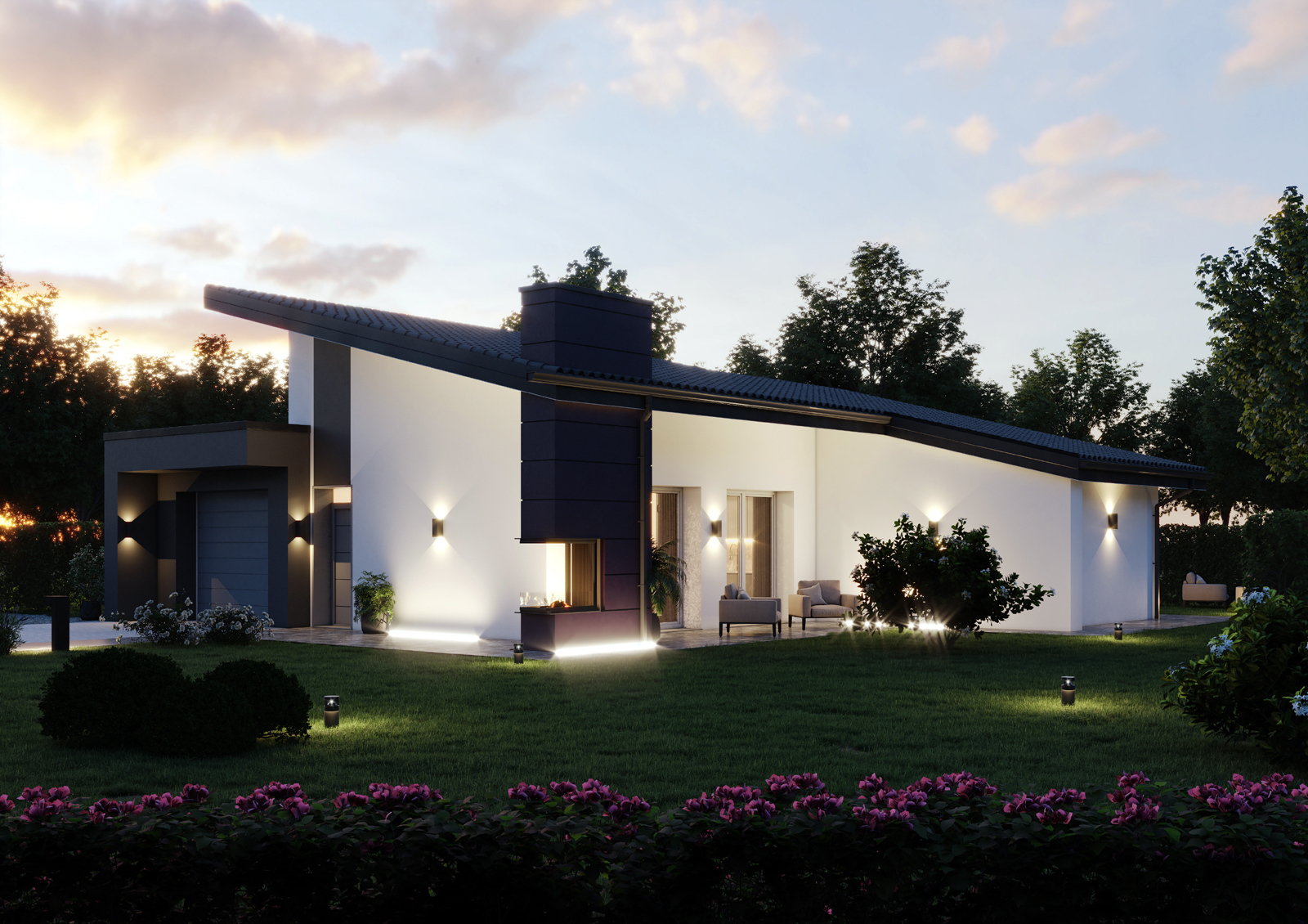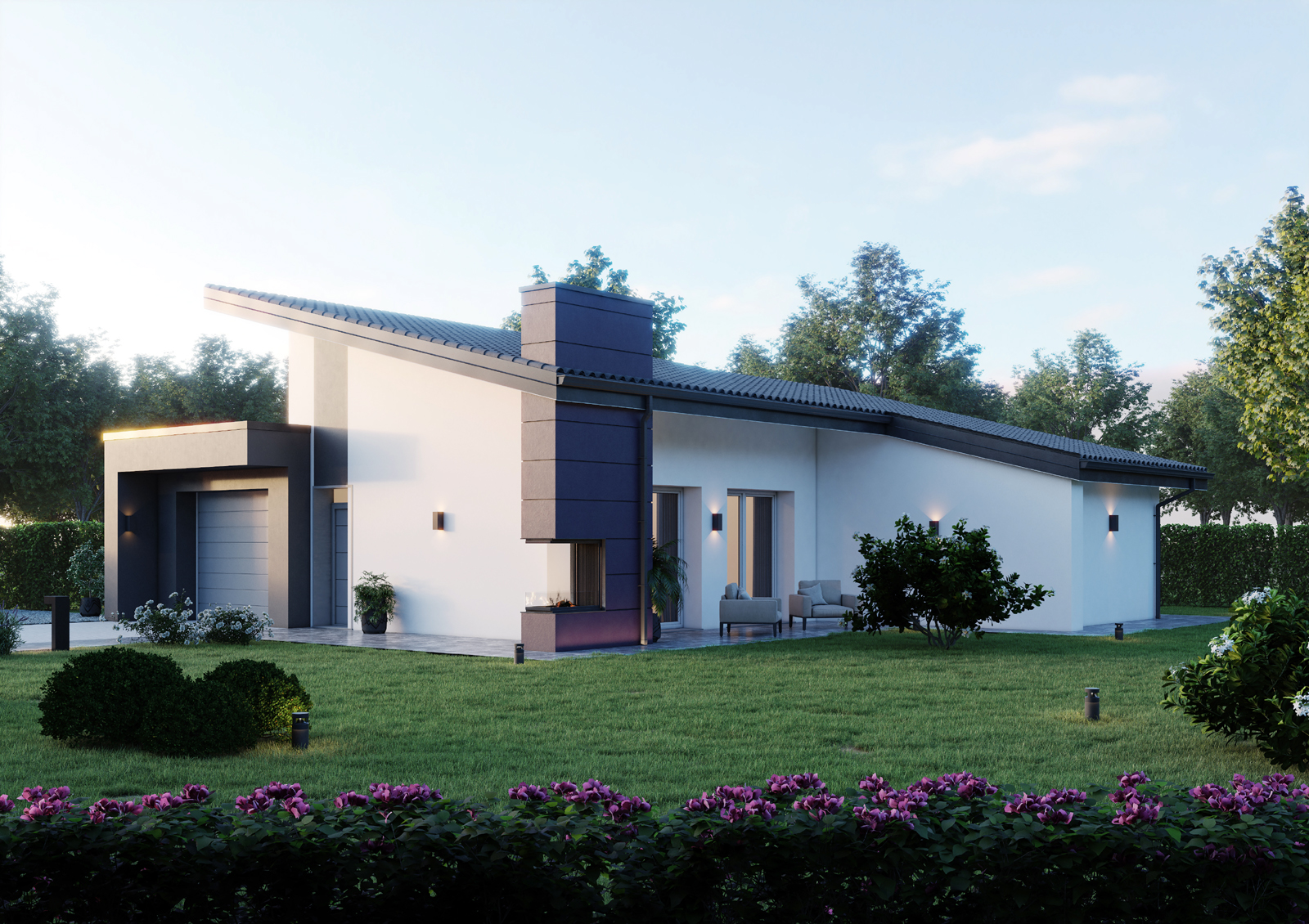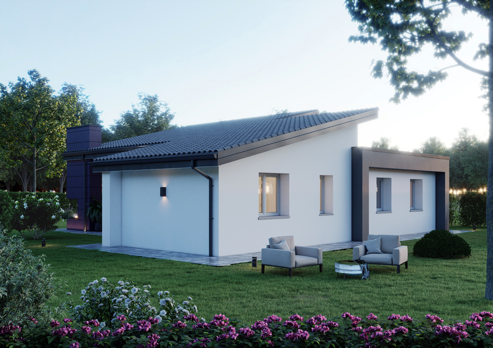 La filosofia progettuale prevede degli edifici moderni. Le unità residenziali monopiano presentano n.2 tipologie di copertura, copertura piana e monofalda.