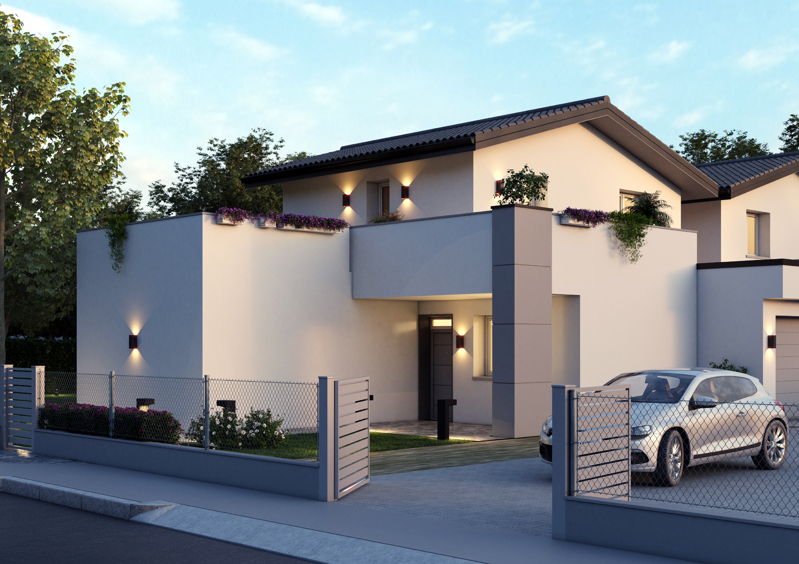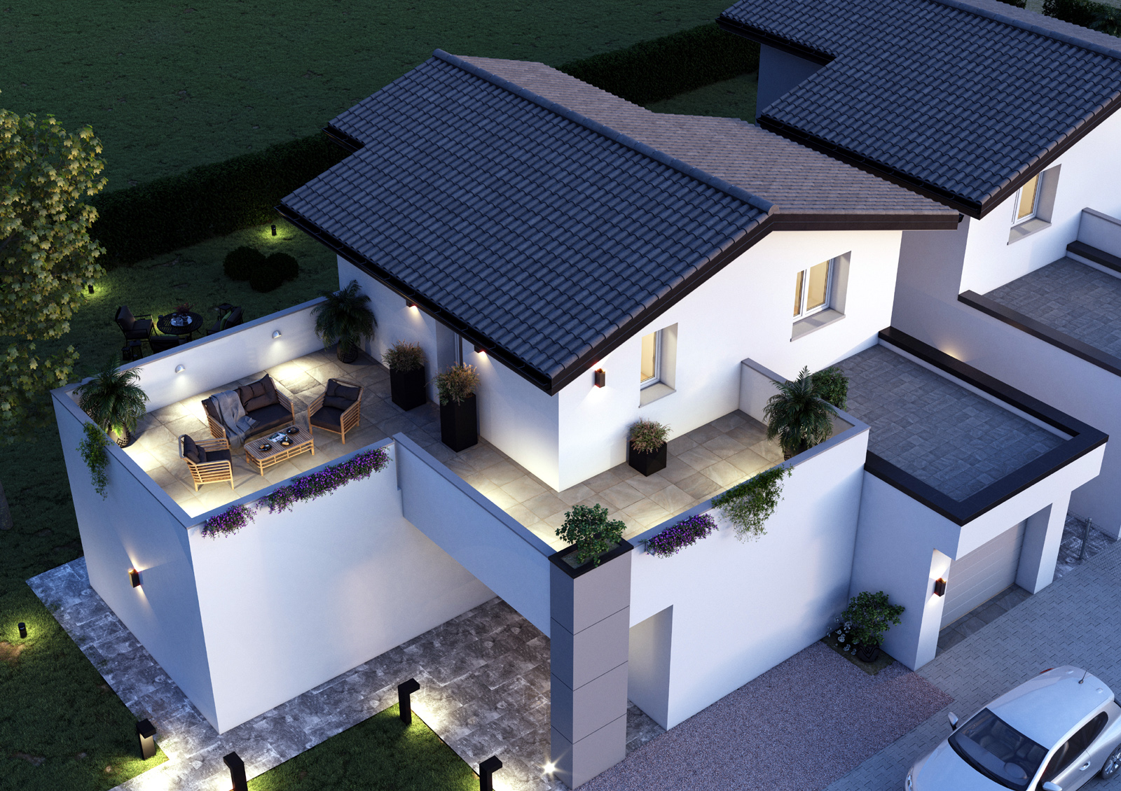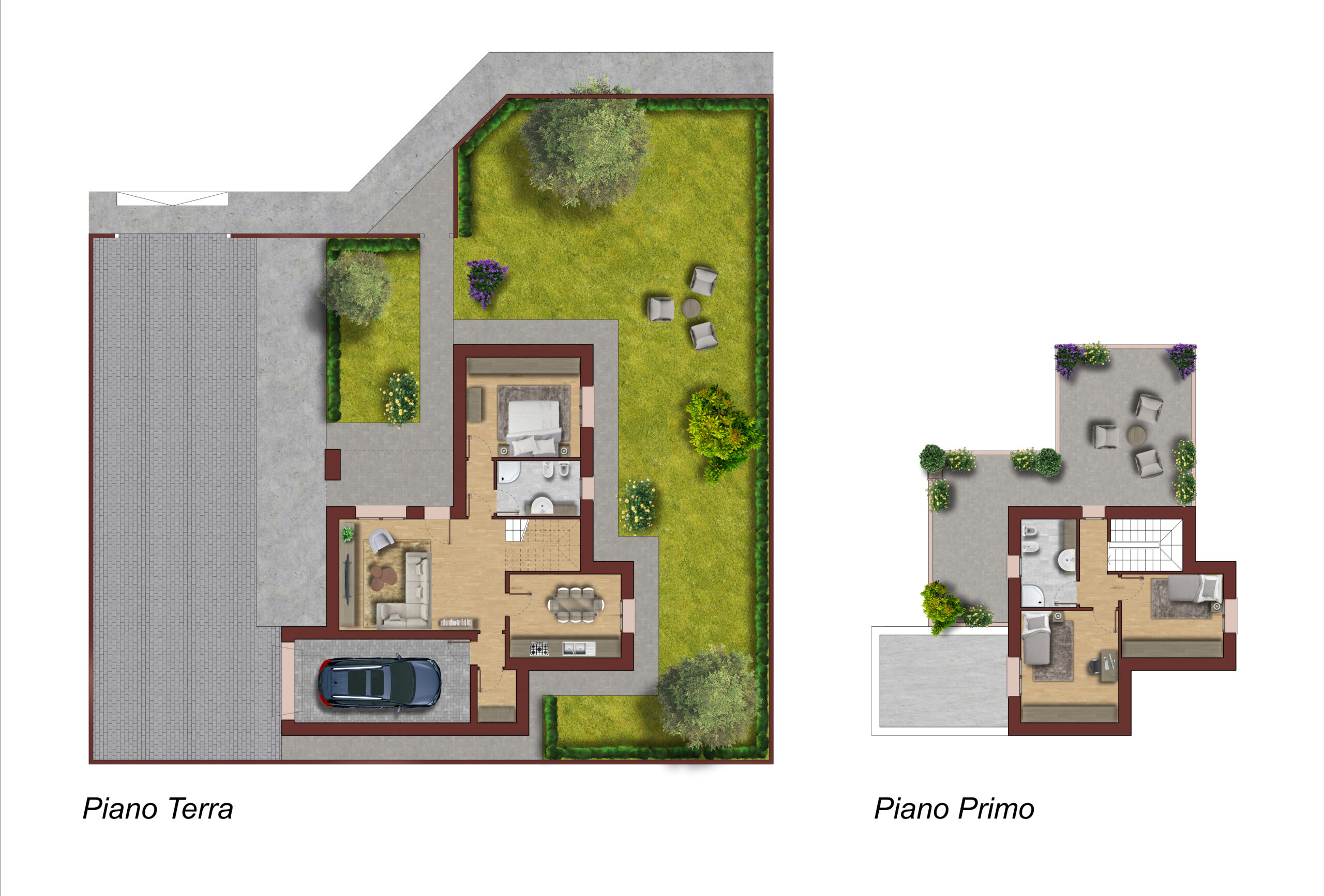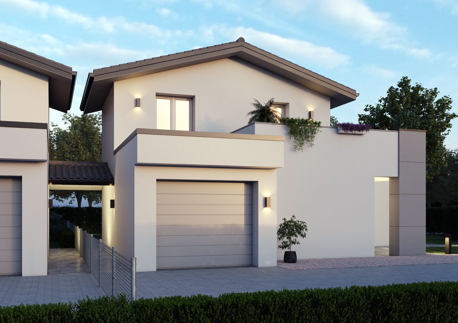 Per gli edifici monofamiliari su n.2 livelli previsti ampi terrazzi.